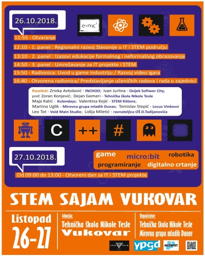Mirovna Grupa Mladih Dunav zajedno s Tehničkom školom Nikola Tesla Vukovar organizator je STEM sajma koji će se održati 26. i 27.10.2018. u Tehničkoj školi NikoleTesle u Vukovaru.